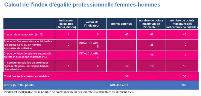 Sous la forme d’une note sur 100, l’index est composé de quatre grands critères qui évaluent les inégalités entre les femmes et les hommes dans les entreprises.